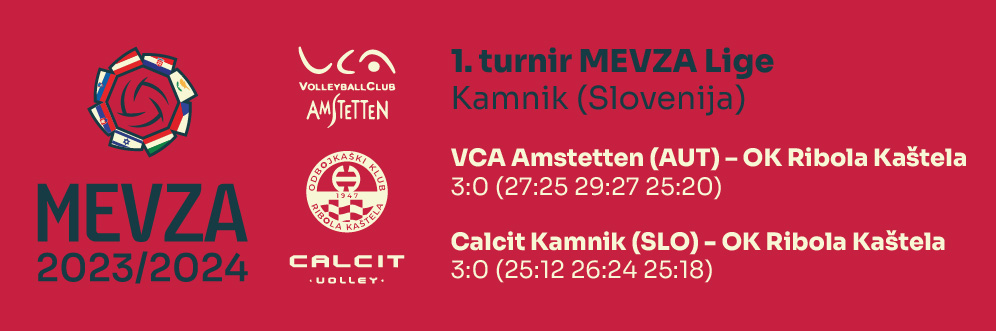 Osim CEV Challengea, ove sezone naši odbojkaši igrat će i MEVZA ligu, a raspored utakmica i protivnike, pogledajte u nastavku. 1. turnir (Kamnik) 01.11.2022. 02.11.2022. 03.11.2022. 2. turnir (Zagreb) 22.11.2022. 23.11.2022. 3. turnir (Amstetten) 28.12.2022. 29.12.2022. 4. turnir (Kaštela) 17.01.2023. 19.01.2023. 5. turnir (Komarno) 01.02.2023. POLUFINALE: 21-23.02.2023. - 1. utakmica 28.02.-02.03.2022. - 2. utakmica SUPERFINALE: 18. ili 19.03.2023. |