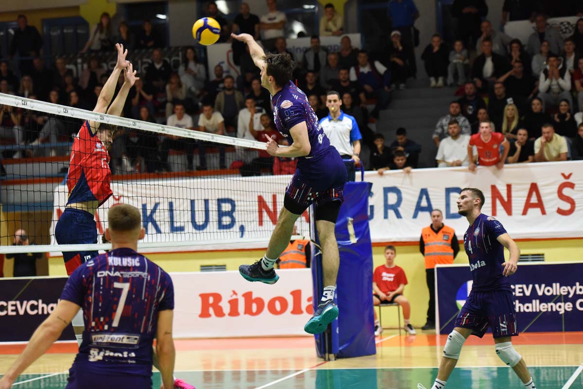 12.11.2025 EURO CHALLENGE Naši odbojkaši odigrali su sjajnu utakmicu 1/32 finala CEV Challenge cup-a protiv favorizirane OK Crvena Zvezda Beograd ali su nakon velike borbe poraženi s 3:2 (30:32, 23:25, 25:17, 25:22, 15:13) Bila je to vrhunska odbojkaška predstava u punoj dvorani protiv jednog od najjačih klubova regije. Glavni trener Ivan Rančić: "Čestitam Zvezdi na pobjedi, iako ne bi bilo nezasluženo da smo i mi pobijedili jednog velikog favorita, jednu sjajno posloženu ekipu, višestruko iskusniju s puno većim budžetom. Trener Crvene Zvezde Ivica Jevtić zahvalio je na gostoprimstvu i uputio čestitke domaćoj ekipi na odličnoj igri. Rekao je kako je ova utakmica mogla i drukčije završiti i da bi i tako bilo zasluženo, no da je ovog puta prevagnulo na njihovu stranu. 1/32 finala CEV Challenge Cup-a |